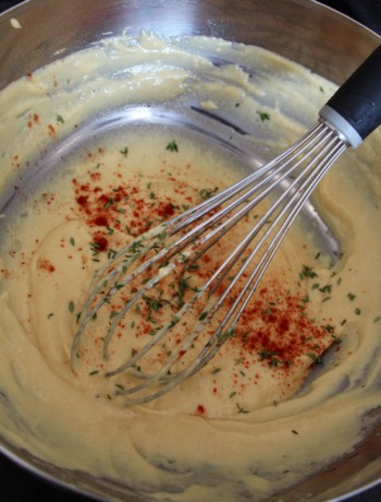 Ma petite touche personnelle : du thym frais de mon jardin et du paprika dans la pâte pour encore plus de saveur…