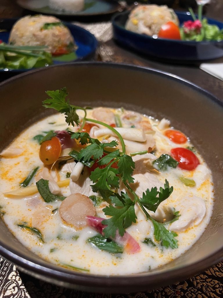 Et bien sûr la soupe Tom Yam Kai au curry vert et poulet. Je suis fan !!