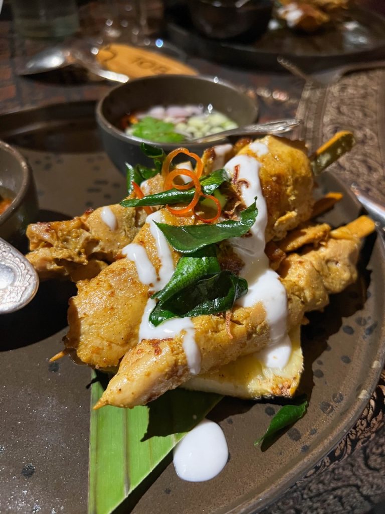 Les brochettes de poulet à la cacahuète ou satay au poulet, vraiment très bon.