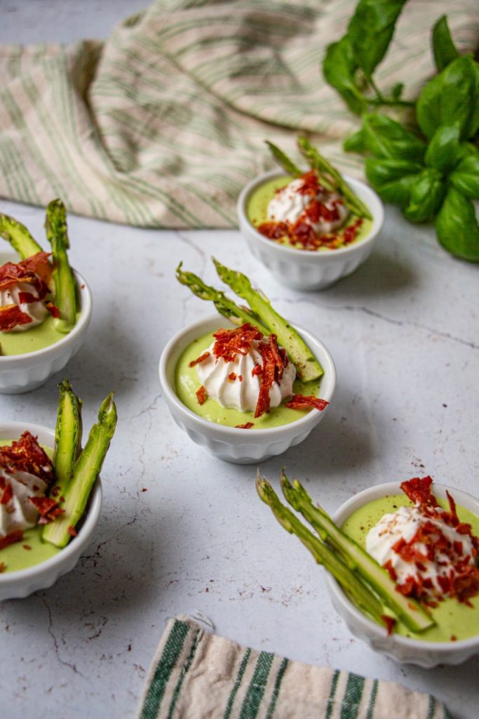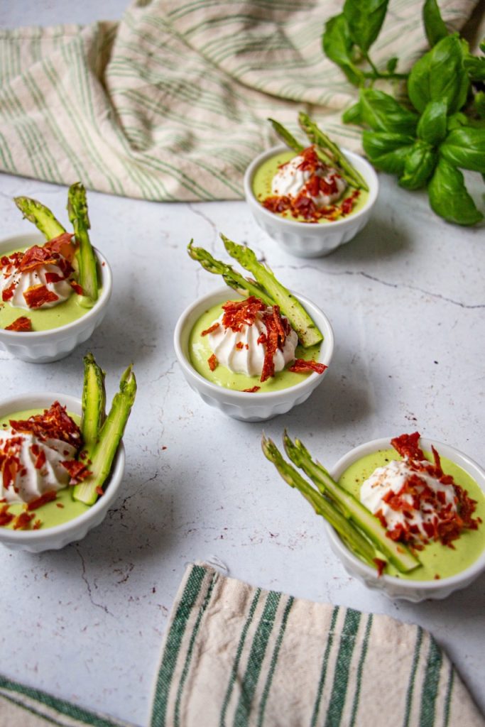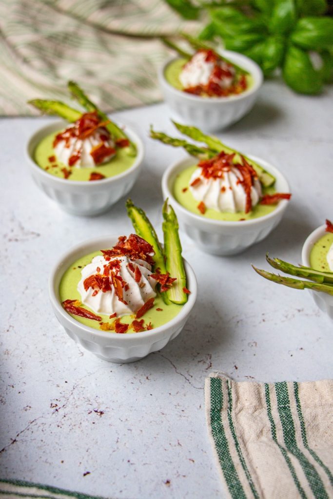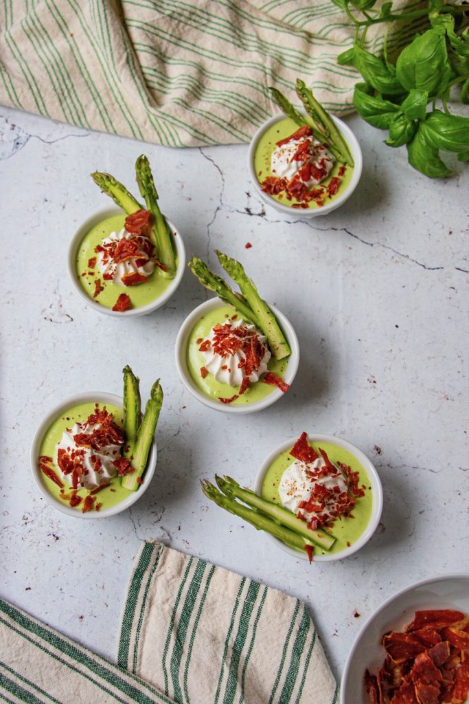 Pour finir, cette mousse d’asperges vertes va amener végétal et couleur à votre table d’apéro. Ça aidera à compenser la charcuterie et les biscuits apéro ! 😉