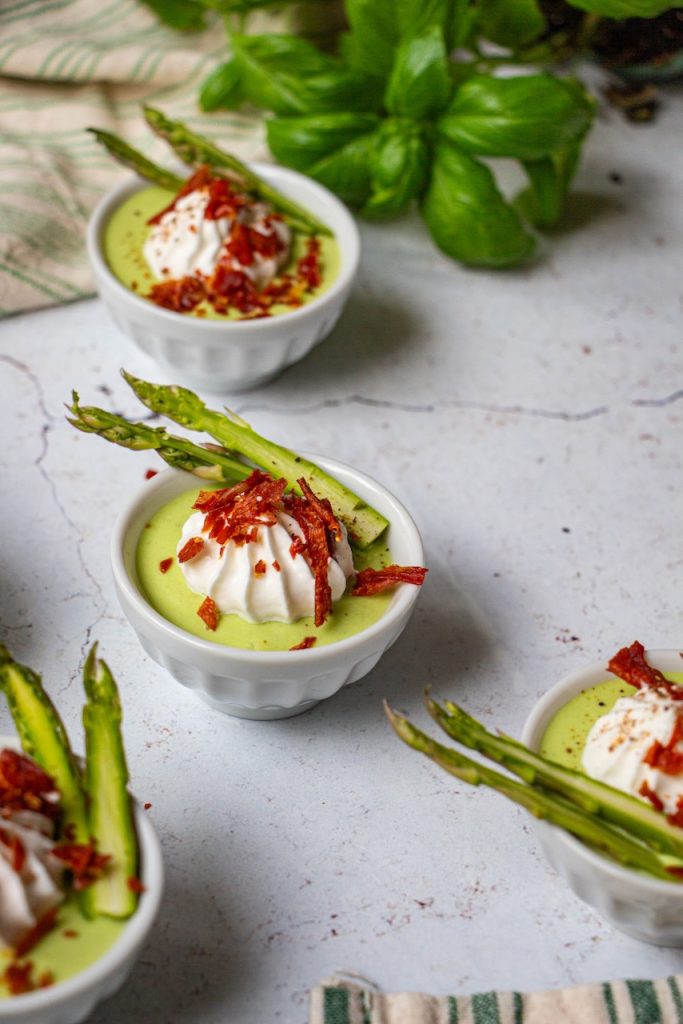 Si vous voulez mixer avec des asperges blanches, c’est possible. Néanmoins, je recommande de garder une belle proportion d’asperges vertes, pour le goût et la couleur bien sûr !