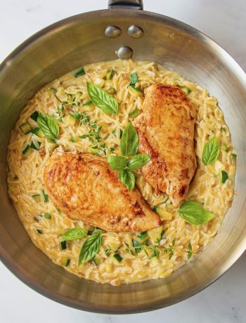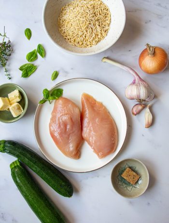 Voilà, je crois qu’il n’est pas nécessaire de vous en dire plus. On enfile le tablier pour réaliser mon orzo crémeux au poulet et courgette ?