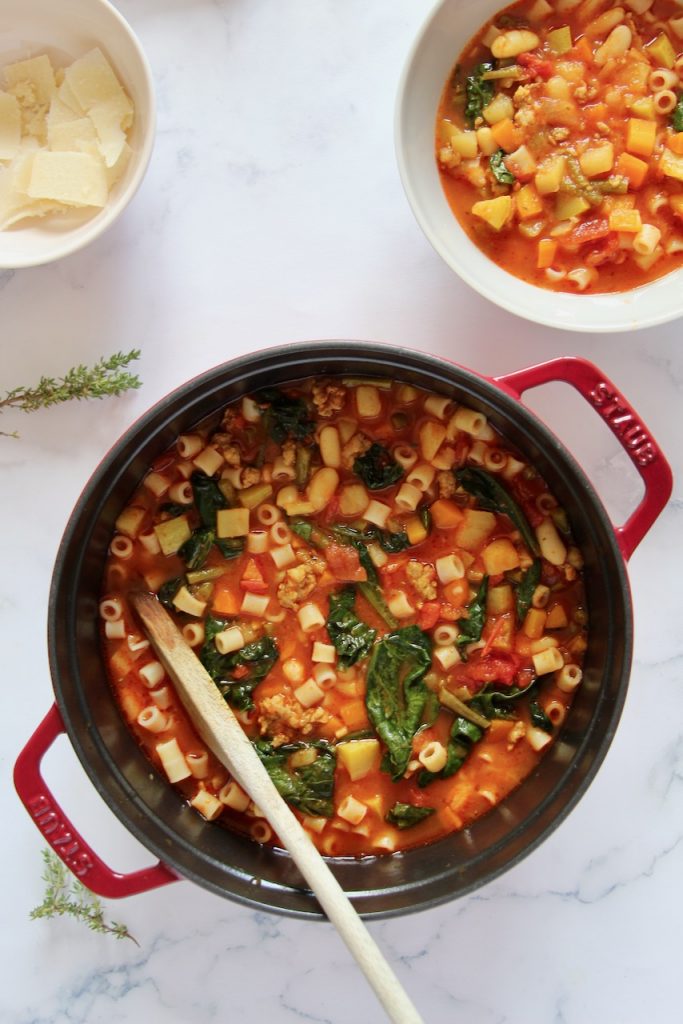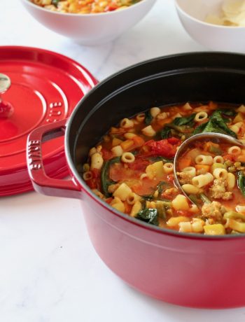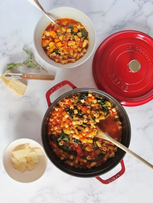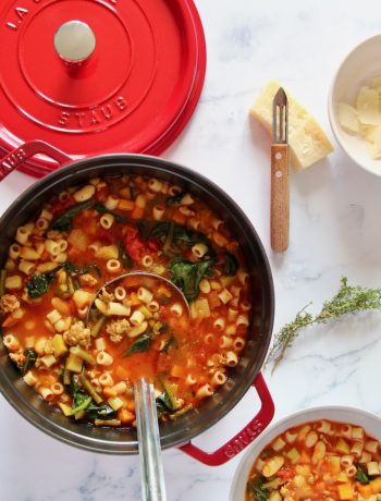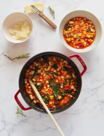 Mon conseil pour les pâtes : il faut les faire cuire à part. Si vous les faites cuire dans la soupe, vous aurez un résultat très « sirupeux ».