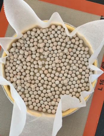 Dans ce cas, vous étalerez la pâte, recouvrirez d’un papier cuisson et de billes en céramique pour éviter que la pâte ne lève à la cuisson.
