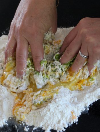 Je préfère ici travailler ma pâte à la main plutôt qu’avec mon fidèle robot, comme je le fais pour d’autres préparations. Et cela pour deux raisons :