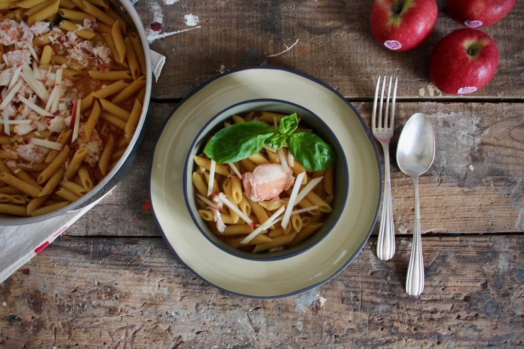 Alors, je partage !! Voici les penne au crabe et pommes Pink Lady !