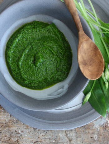 Ce pesto à l’ail des ours sera délicieux avec des pâtes (tout simplement !!) ou comme condiment pour un poisson ou une viande. En fait, vous pouvez l’utiliser comme votre traditionnel pesto au basilic.
