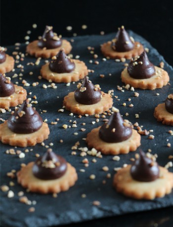 Si vous réservez vos petites bouchées au chocolat au frais, pensez à les sortir 5 minutes avant de les servir pour que la ganache remonte un peu en température et ne soit pas trop dure.