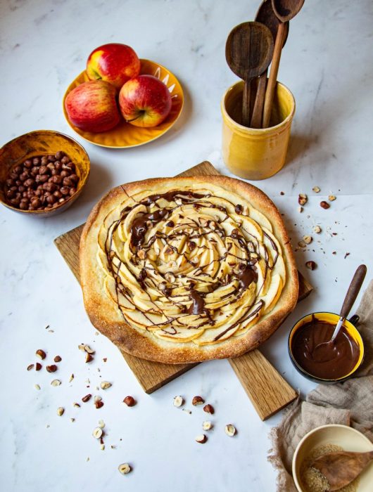 Alors c’est vrai que quand on pense cuisine italienne on est souvent dans des recettes salées (à part le fameux et délicieux tiramisu !!) et que quand on évoque la pizza on voit plus de la sauce tomate et de la burrata que des pommes ! Néanmoins, faire l’impasse sur les pizzas sucrées serait une erreur… gastronomique !