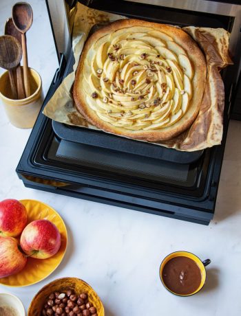 J’ai cuit ma pizza sucrée dans mon four traditionnel pour cette fois, mais le résultat ne sera que meilleur dans un véritable four à pizza comme mon four Ooni dont je vous parle régulièrement. C’est vraiment un appareil incroyable qui vous permettra d’avoir des pizzas comme à la pizzéria !