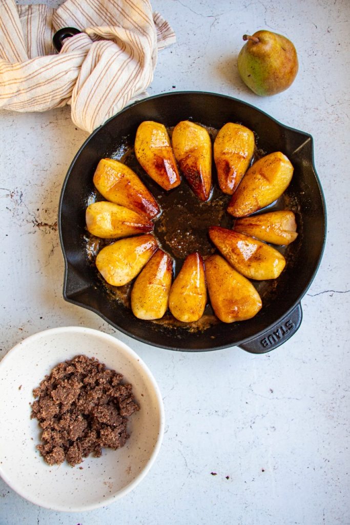 Poires confites et Crumble à la Farine de Lin