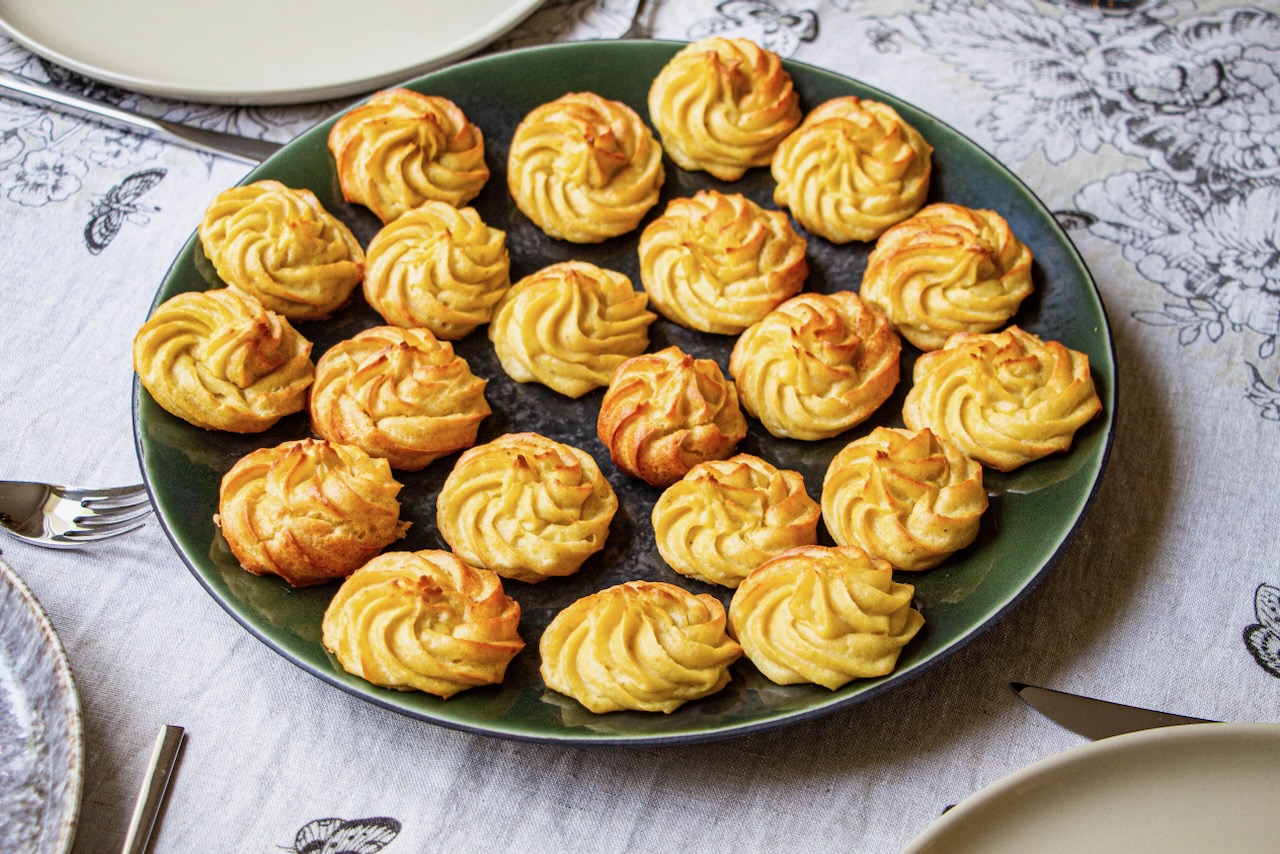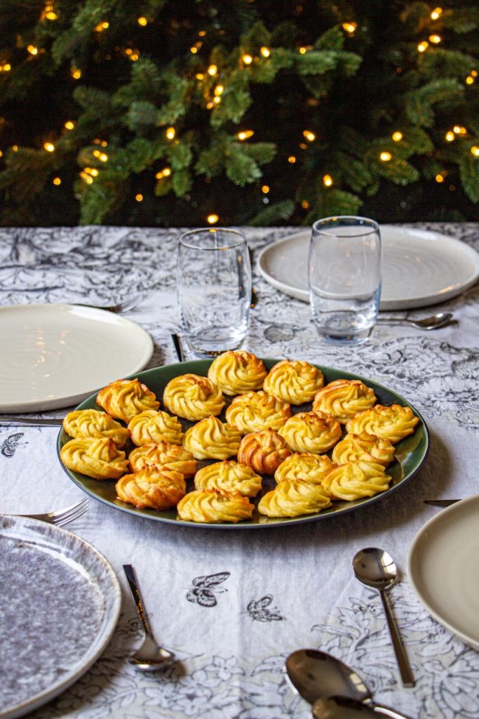 J’ai associé mes pommes dauphine à mes délicieuses galettes de viande alsaciennes, les fleischkiecheles ! C’est une combinaison que je recommande. Avec mes magrets de canard à l’orange c’est également une petite pépite !!