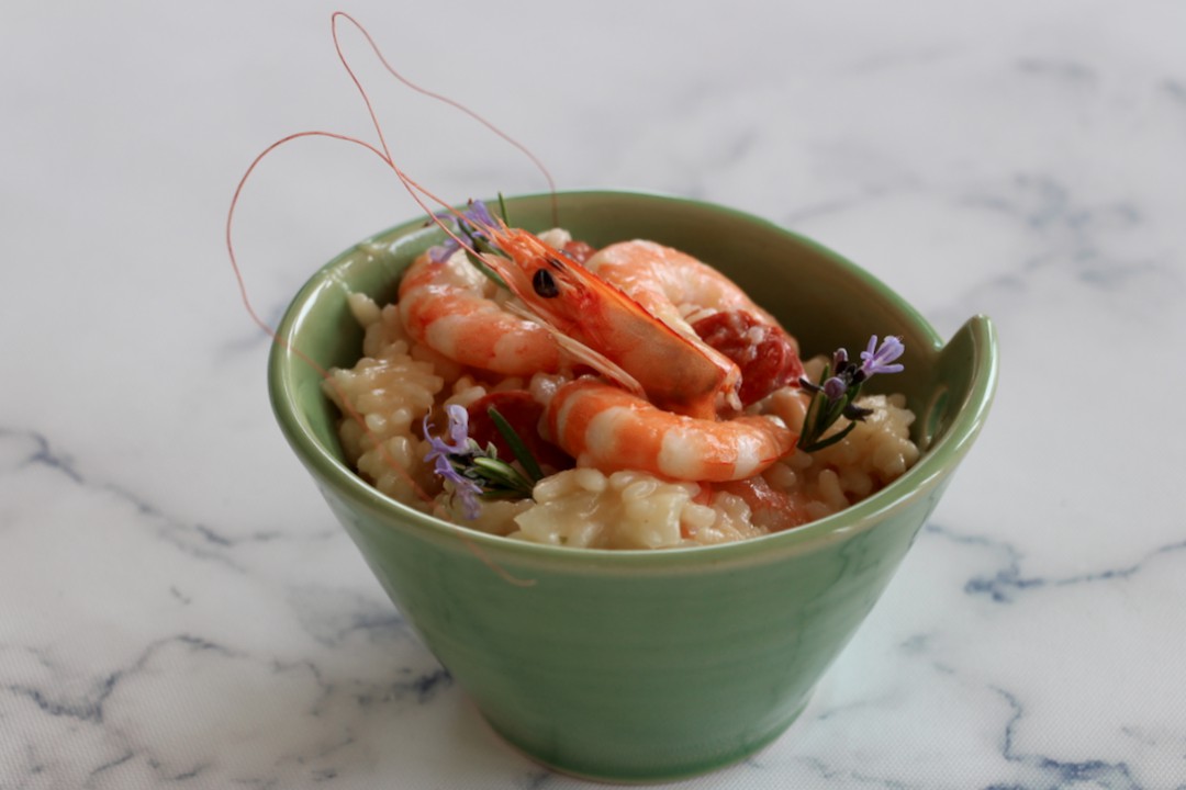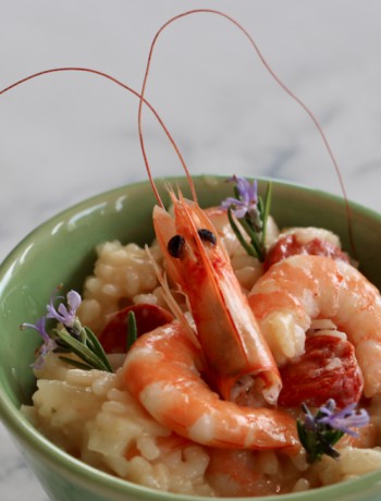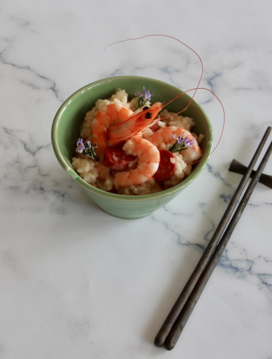 Je vous présente aujourd’hui le risotto au chorizo et crevettes ! La boucle est bouclée !!