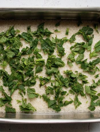 Répartissez le beurre coupé en petits cubes ainsi que les feuilles de menthe.