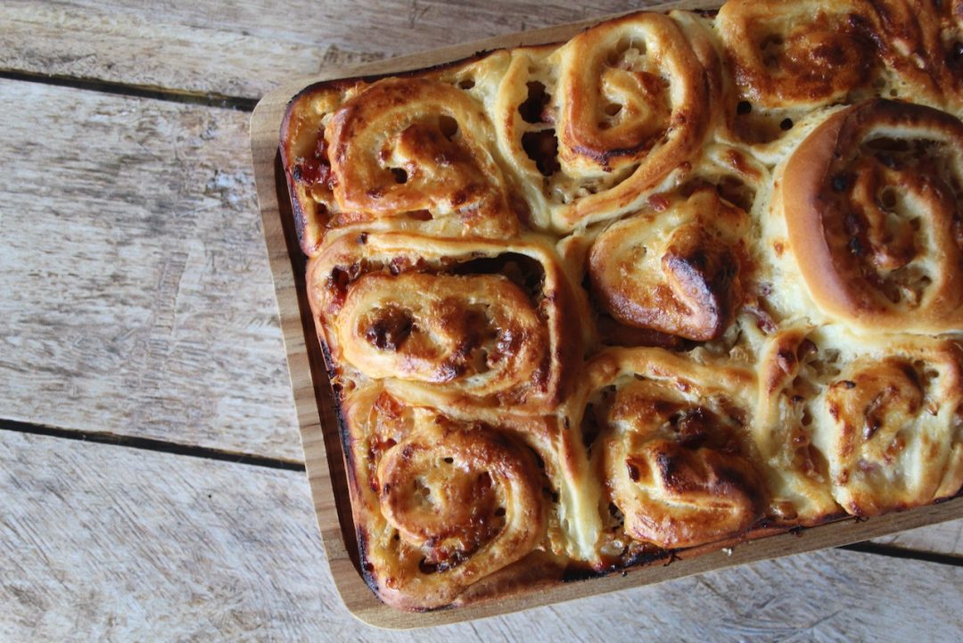 Et donc là, j’ai eu envie de mixer les États-Unis avec l’Alsace, le salé avec le sucré, le dessert avec le plat. Bref … J’ai fait un mix des fameux cinnamon rolls et de la tarte flambée ! Quoi ?????