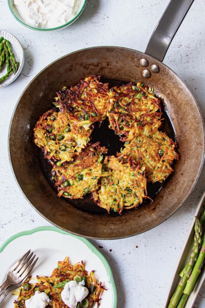 Oui cette recette de röstis aux légumes de printemps pourra vous sembler similaire à l’une ou l’autre recette déjà présente ici. Et c’est normal, je vais tout vous expliquer… Vous pensez peut-être aux galettes de pommes de terre alsaciennes ou grumbeerekiechele ou encore mes galettes courgettes et pommes de terre. On pourra même évoquer mes galettes de maïs…