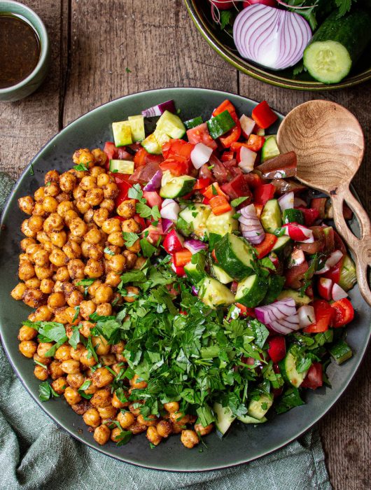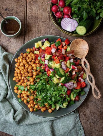 Pendant les vacances, on se fait plaisir et c’est bien normal. Moi, je suis fan des apéros, donc en été j’ai tendance à oublier un peu l’équilibre sur ma table. Je reprends donc mes bonnes habitudes et cette salade d’été façon Ottolenghi est parfaite pour ça !