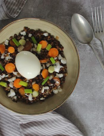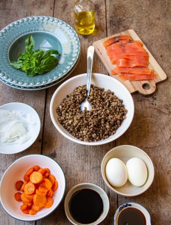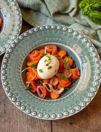 Cette salade de lentilles, carotte et oeuf mollet pourra se manger froide (en été par exemple) ou tiède (au printemps ou en automne). Et vous pourrez la moduler, comme souvent avec mes recettes, vous en avez l’habitude maintenant !