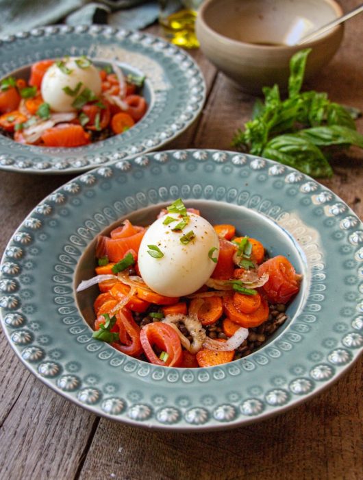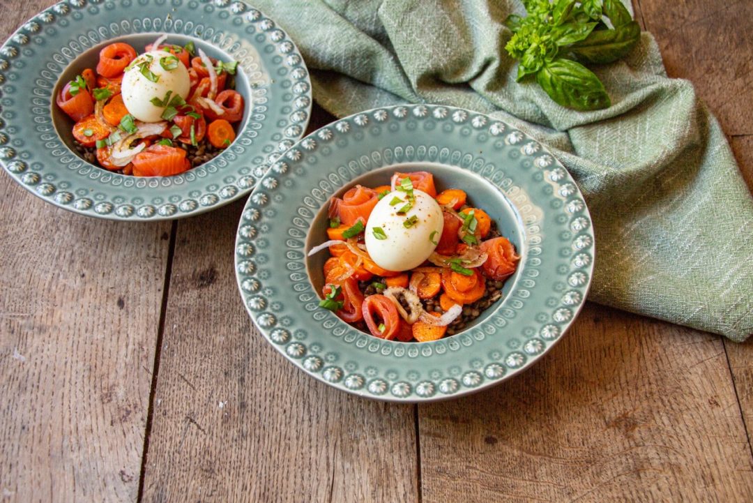 Ma salade de lentilles, carotte et oeuf mollet, une recette versatile