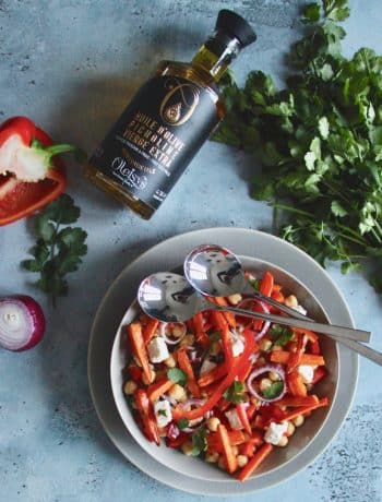 Pour qu’une salade soit sympa, comme cette salade de pois chiches, carottes au cumin et poivron, il vous faut des ingrédients de qualité. Je parle bien sûr des légumes ici mais aussi de l’huile d’olive. Ne négligez pas ce point et prenez une huile d’olive qui a du goût sans pour autant tout écraser au passage !! 😉