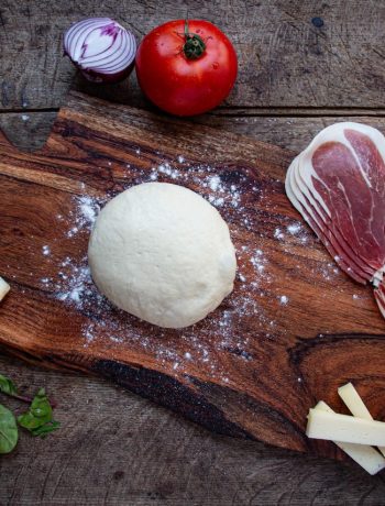 Jusqu’à présent, je pétrissais ma pâte avec mon robot pâtissier mais depuis mon cours de pizza avec Thierry Graffagnino, triple champion du Monde de pizza (oui rien que ça !!), je pétris ma pâte à la main. j’avoue que j’aime travailler les pâtes à lever. C’est une sensation vraiment satisfaisante je trouve. Je m’égare… 😉 La recette, donc !
