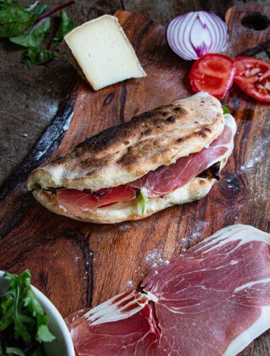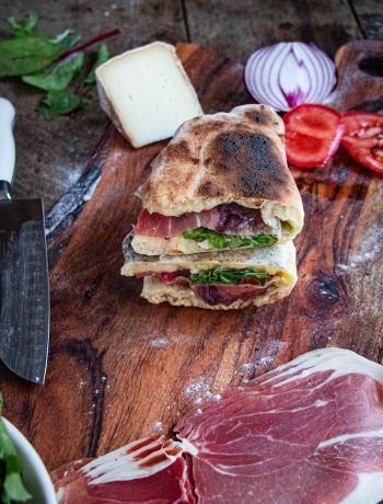 Bon, assez de parlote… On enfile le tablier pour faire un sandwich pizza au jambon cru ?