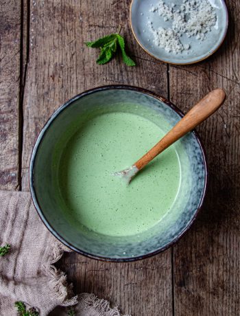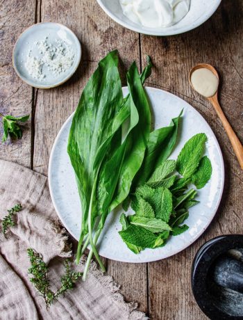 Côté sauce, je suis partie sur une base de fromage blanc à 10% de matière grasse. Vous pourrez prendre du yaourt à la grecque (assez liquide) ou du yaourt grec (plus compact). Pour les herbes, en plus de la menthe et de l’ail des ours que je propose, vous pourrez prendre persil, ciboulette, estragon, basilic ou encore aneth.