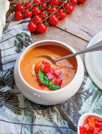 Voilà, il ne reste plus qu’à se rendre en cuisine, enfiler le tablier et faire votre délicieuse soupe froide de tomates, sans cuisson !