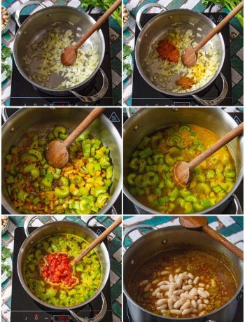 A la fin de la cuisson, ajoutez les haricots blancs rincés et égouttés. Cuisez encore 5 minutes.