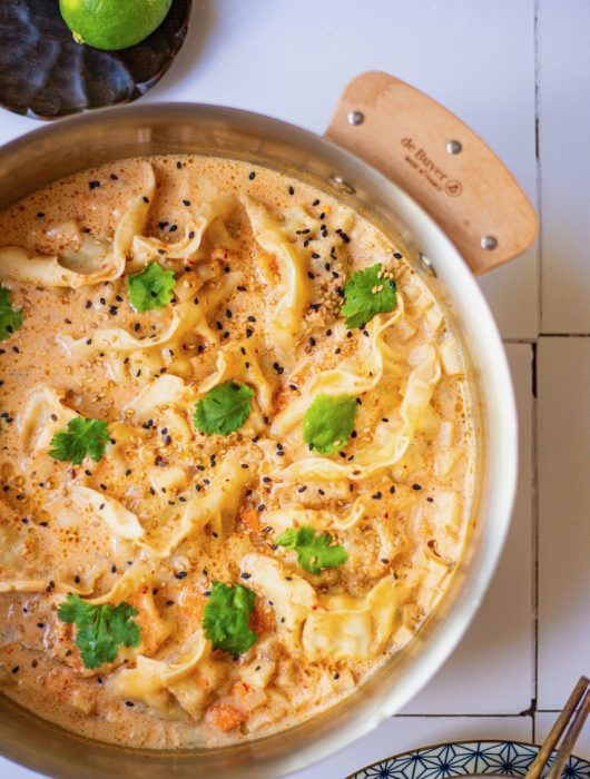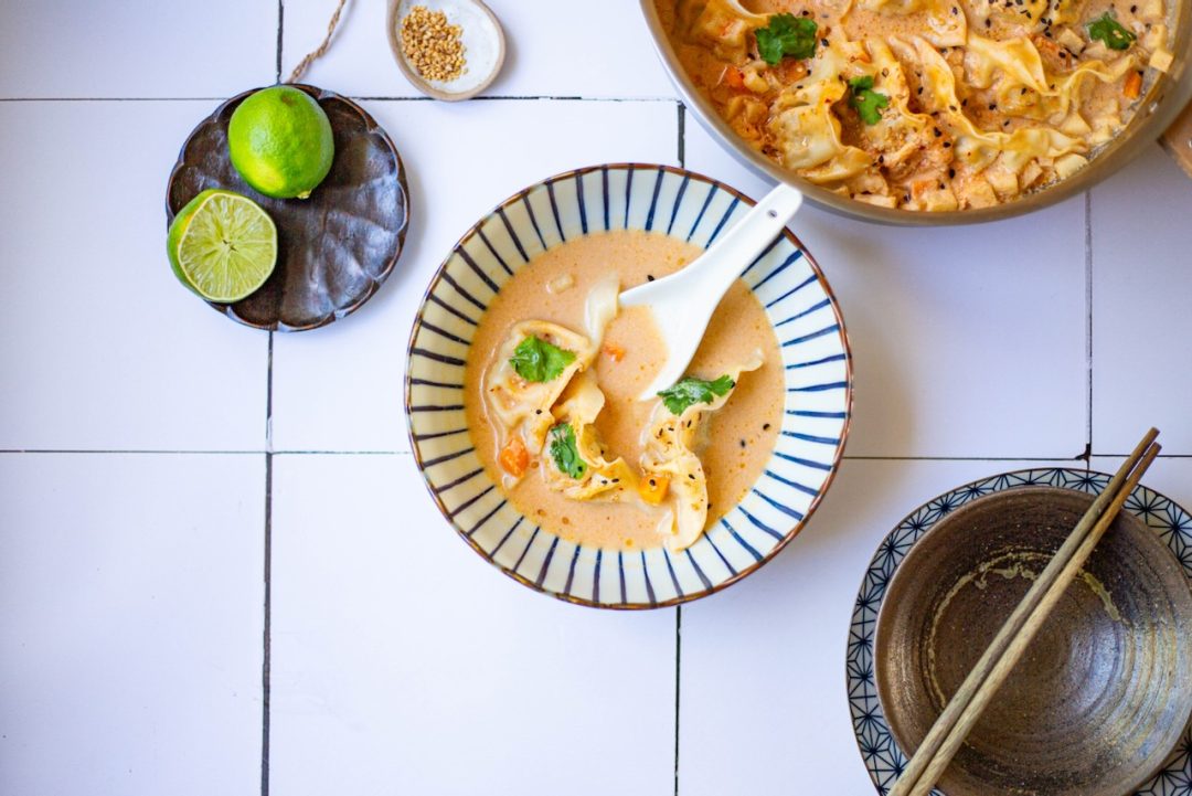 Ma soupe de raviolis chinois et curry rouge, une recette versatile