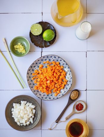 Selon la saison vous pouvez varier les plaisirs côté légumes. Ici je suis partie sur des légumes racines (carotte et navet), mais on peut prendre de la courge butternut, de la courgette, de la pomme de terre ou du chou chinois ! C’est vraiment fonction de vos goûts et de la période dans l’année. Car oui, ce serait dommage de ne faire cette soupe qu’à l’occasion de la fête de la mi automne ! 😉