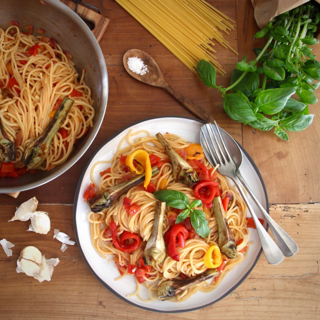 Et pour sublimer vos spaghettis aux poivrons confits et artichauts