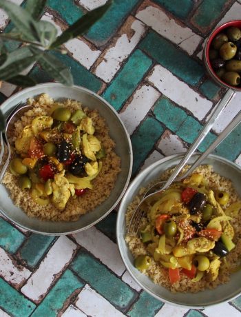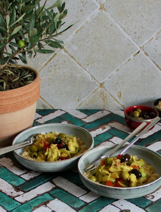 Alors je vous propose de mettre du soleil sur la table avec mon tajine de dinde aux olives !