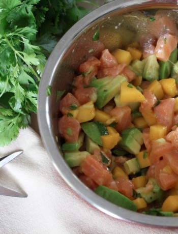 Les citrons vont amener la juste dose d’acidité, l’avocat et la mangue se chargeront de la douceur, la coriandre amènera le peps !!