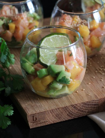 Aujourd’hui donc c’est du pur bonheur ces verrines de tartare sa saumon, avocat et mangue !!