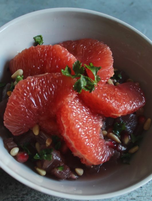 A part ça, vous verrez que le pamplemousse c’est un peu la révélation de ce tartare. Je prends si possible du rouge, sinon du rose, qui est moins acide que le blanc.