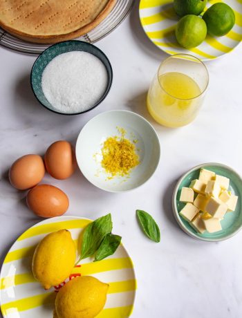 La composition de ma tarte citron, citron vert et basilic
