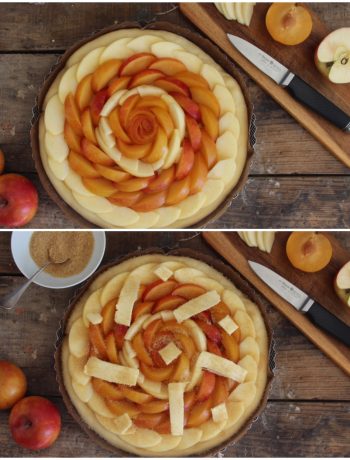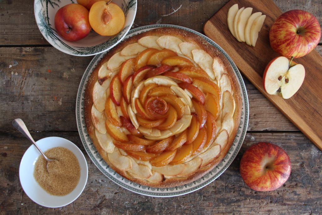 Et pour la garniture, on procède comme pour une tarte aux pommes parisienne. C’est ultra simple. On laisse la part belle aux fruits. Vous pourrez cela dit ajouter une crème façon alsacienne (ou normande, là aussi les origines se discutent…) : un oeuf, du sucre et un peu de crème ajoutés en cours de cuisson.