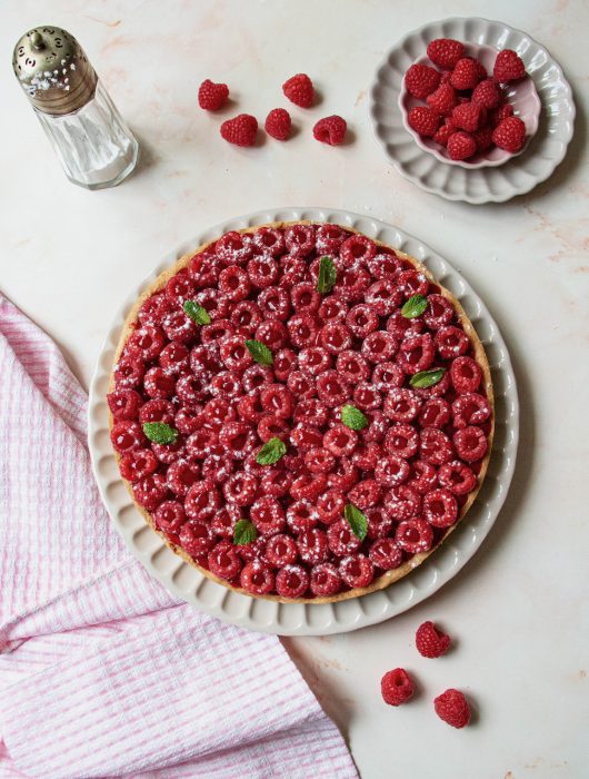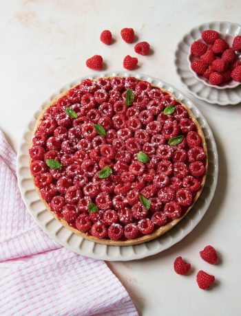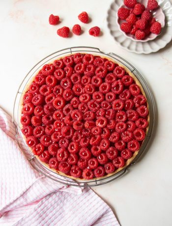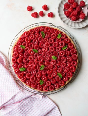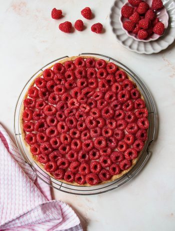 Bon, je vous ai maintenant tout dévoiler pour cette tarte gourmande aux framboises. Il ne reste plus qu’à enfiler le tablier !