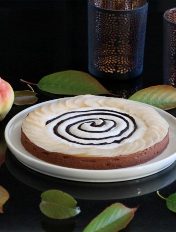 Je vous en parle souvent, je fais partie d’un groupe sur Facebook composé de mamans qui s’entre-aident autour du thème cuisine et pâtisserie. J’avais lancé une bouteille à la mer ayant un délicieux sirop et ne sachant pas quoi en faire. Une maman, Marie-Christine, m’a suggéré une idée… Voici ma tarte Marie-Christine poire – agrume – chocolat !!