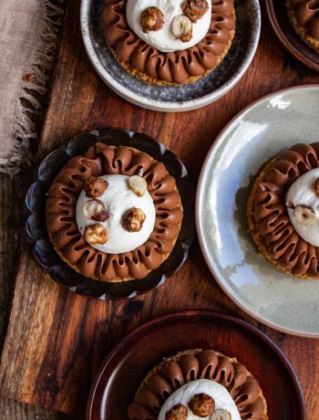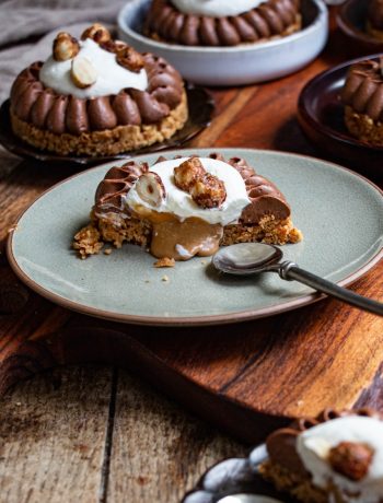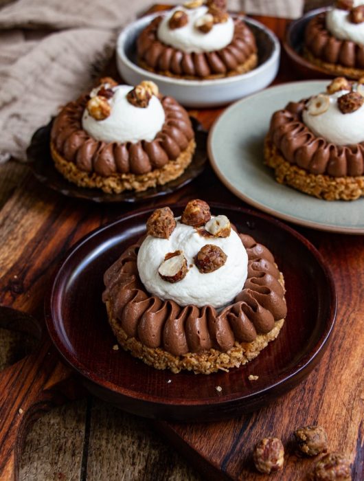 Voici mes tartelettes sans cuisson praliné, chocolat et chantilly !