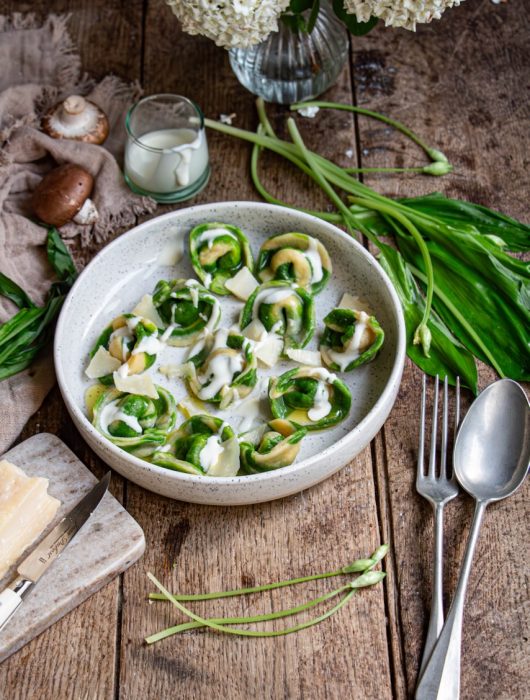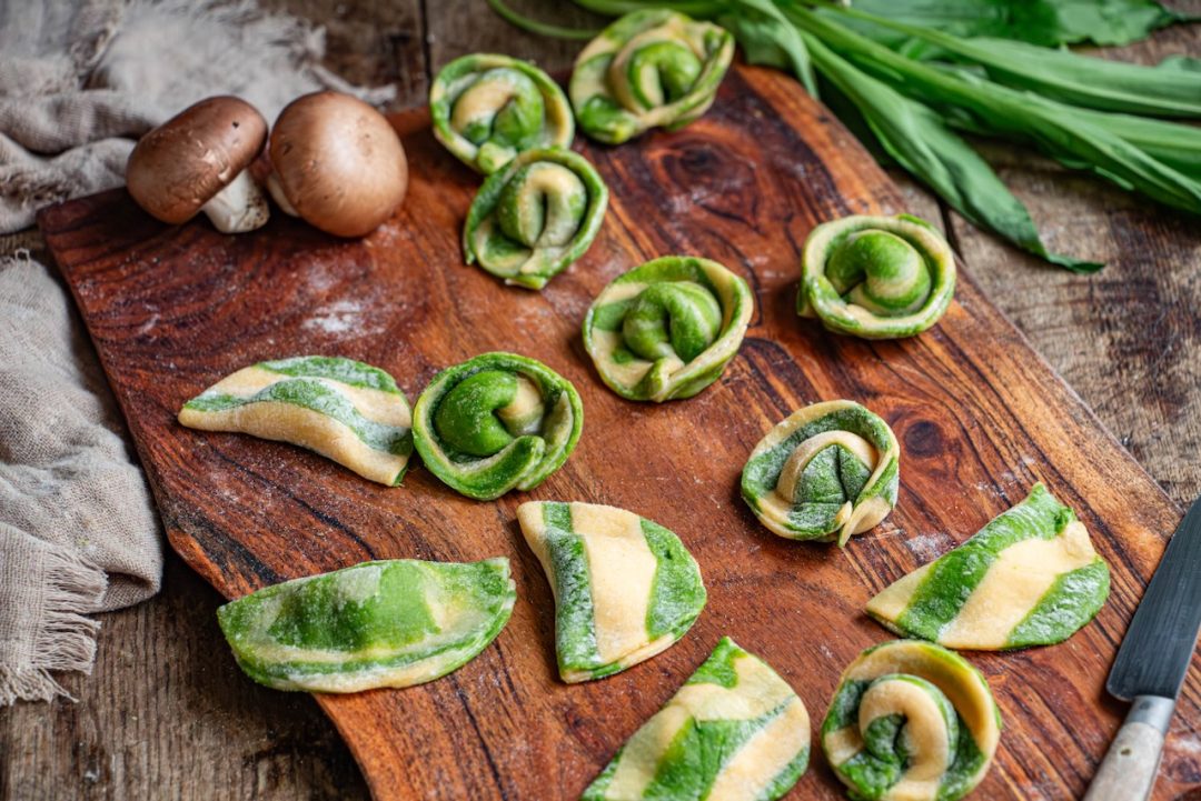 L’inspiration pour cette recette de tortellini bicolores au jambon, burrata et champignons