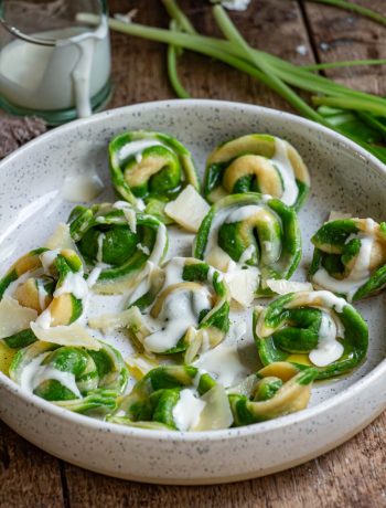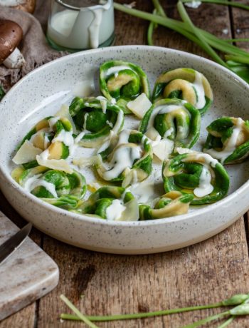 Voilà, j’ai essayé d’être la plus complète possible pour vous permettre de réussir avec succès mes tortellini bicolores au jambon, burrata et champignons.